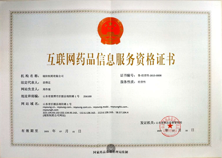 互聯(lián)網(wǎng)藥品信息服務(wù)資格證:魯-經(jīng)營性-2015-0008 營業(yè)執(zhí)照
