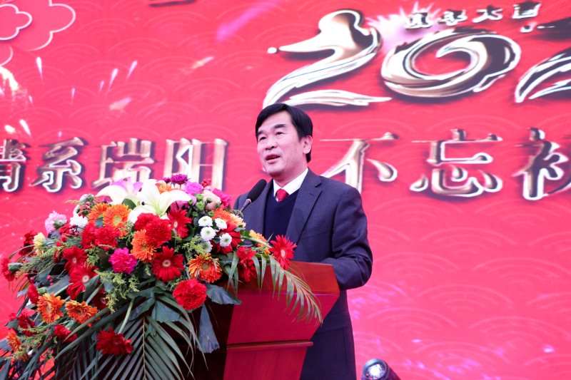 公司黨委書記、董事長、總裁苗得足先生為致晚會致開幕詞。苗董代表公司向各位來賓、各位同事表示了衷心的感謝,向一直以來愛崗敬業、勤勉工作的全體干部員工以及在背后默默支持的家屬們致以最美好的節日祝福。對2019年取得的成績進行了簡要回顧,勉勵全體員工在新的一年里,堅守瑞陽人的初心與夢想,攜手共進,迎難而上。